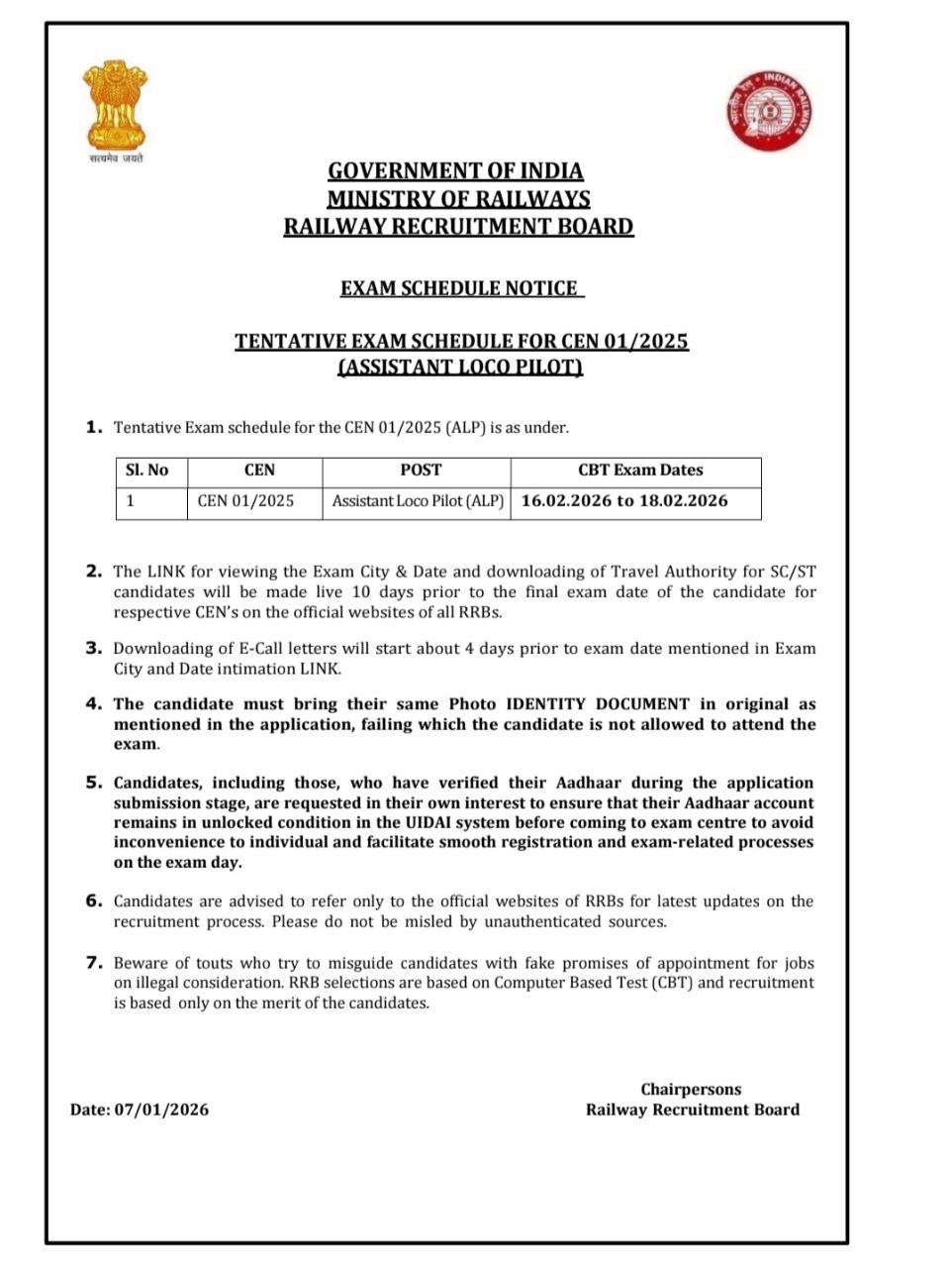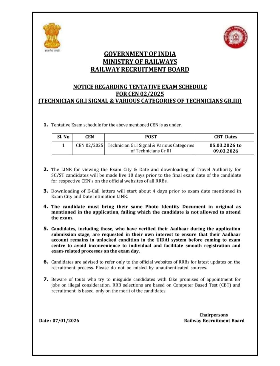 - RRB Technician Grade I & Grade III Exam Date 2026New– Out